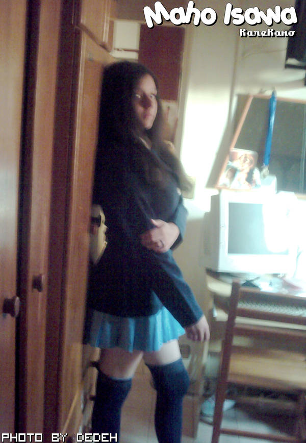 Bom, meu primeiro cosplay foi a Maho Izawa, do anime de 1998 Kareshi Kanojo no Jijou, um shoujo bem bacana mas que a GAINAX não fez o final. Dá pra ver que a roupinha é bem simples! Mas eu gostava muito muito dessa personagem (ainda gosto) e, como eu era uma adolescente que vivia de juntar dinheiro de aniversário pra fazer as coisas (o que per se já é um pouco de privilégio) eu precisava de uma roupa que fosse fácil de mandar fazer e que eu conseguisse pagar com o dinheiro que eu tinha, então dentre as personagens que eu queria muito fazer cosplay, acabei escolhendo ela. Inclusive, o fator CRUCIAL pra escolha dela foi eu usar o cabelo tingido de preto e não precisar de peruca.